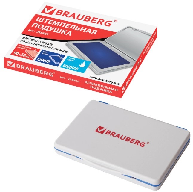 Штемпельная подушка, синяя краска, 100*80 мм, рабочая поверхность 90*50 мм BRAUBERG