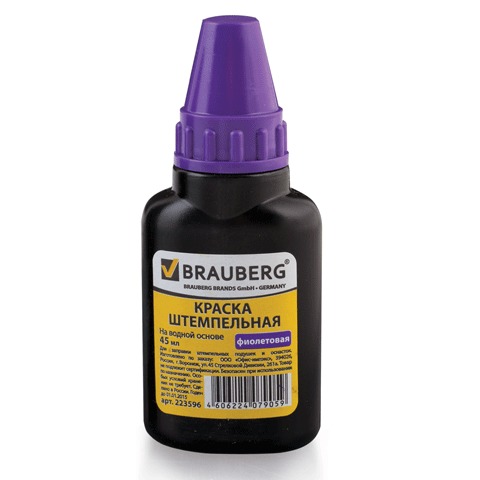 Краска штемпельная 45 мл, фиолетовые на водной основе, Brauberg