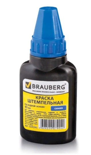 Краска штемпельная, синяя, 45 мл, на водной основе BRAUBERG
