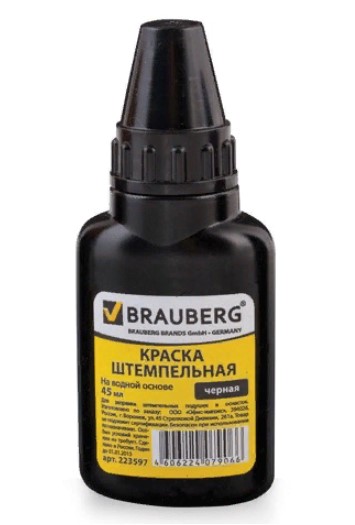 Краска штемпельная черная, 45 мл, на водной основе BRAUBERG