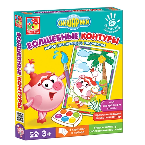 Набор серии «Волшебный контур» — это пропуск в мир увлекательного творчества. Предложите ребенку самому нарисовать четыре картины с героями популярного мультсериала «Смешарики». Поверьте, он легко справится с этой задачей! Все картинки в наборе уже снабжены цветными выпуклыми контурами, которые не позволят краске вытекать за границы.