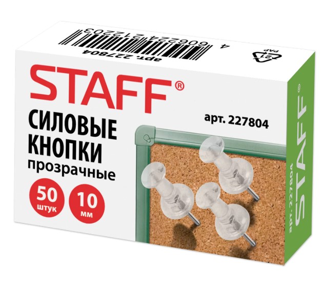 Силовые кнопки-гвоздики прозрачные STAFF, 50 штук, в картонной коробке