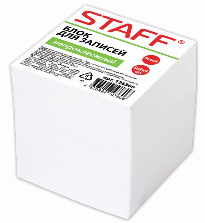 Блок для записей, непроклеенный Staff белый 90*90*90 мм