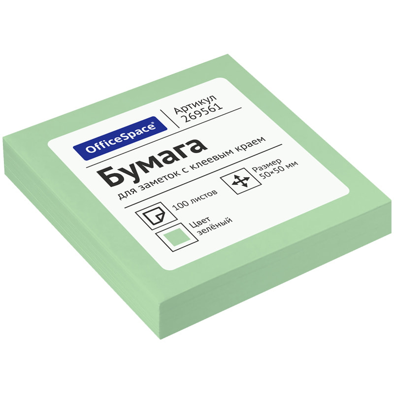 Блок для записи самоклеящийся, 100 листов, 50*50 мм OfficeSpace зеленый
