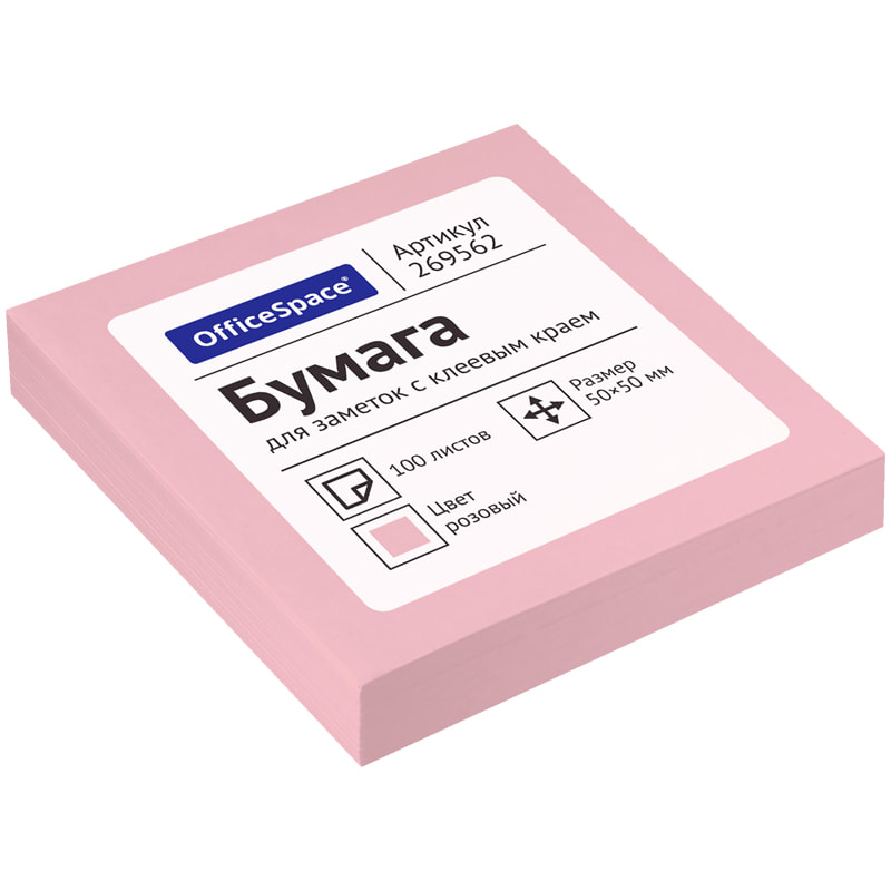 Блок для записи самоклеящийся, 100 листов, 50*50 мм OfficeSpace розовый