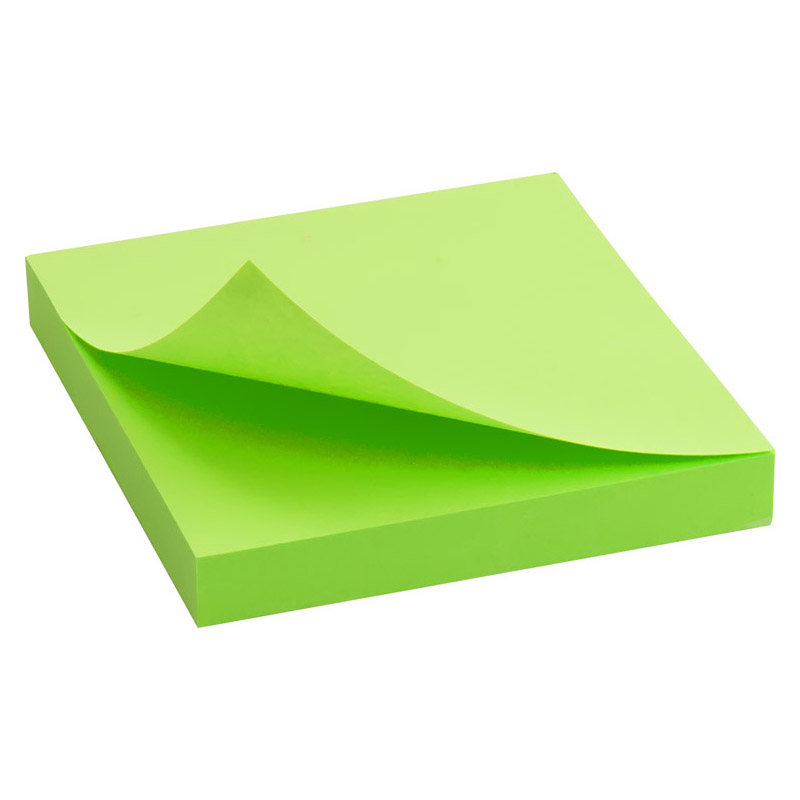 Блок бумаги с клейким слоем 75*75 мм, 100 листов, ярко-зеленый AXENT