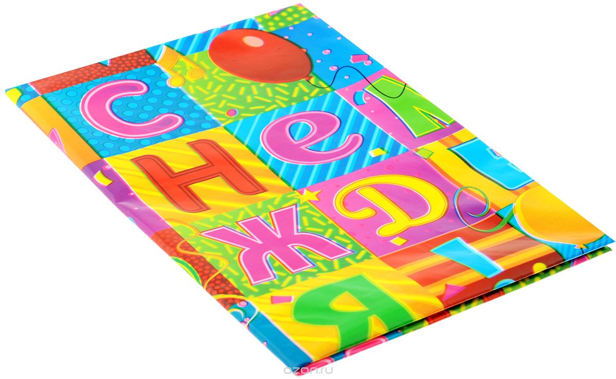 Скатерть полиэтиленовая 1,3*1,8 м "С днем Рождения" мозаика