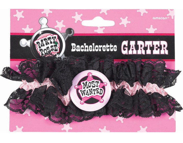 Черная ажурная подвязка с розовой атласной полосой и шерифской звездой most wanted.