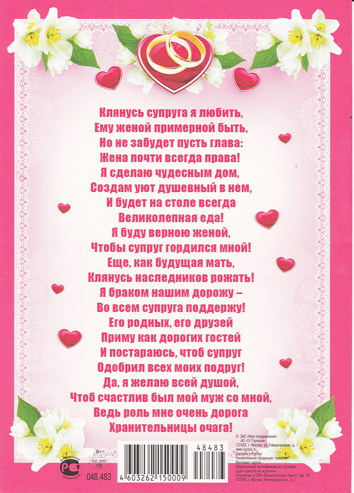 Клятва в стихотворной форме напечатана на плотном качественном картоне с красивым и оригинальным дизайном.