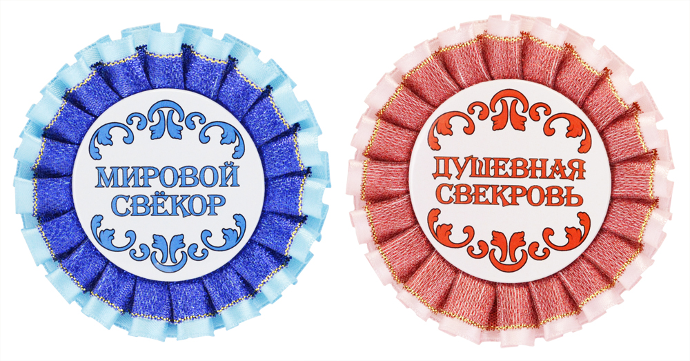 Набор значков-розеток, свадебные, 2 штуки "Мировой свекр, душевная свекровь"