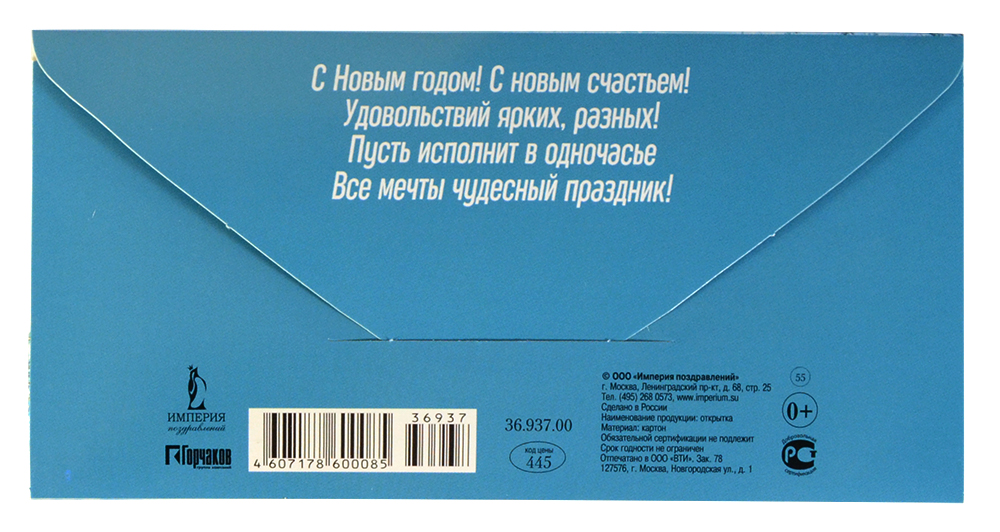 - Дополнительная информация: на обратной стороне поздравление