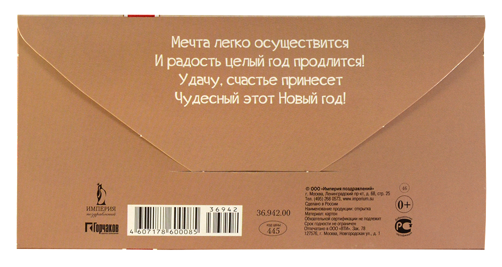- Дополнительная информация: на обратной стороне поздравление