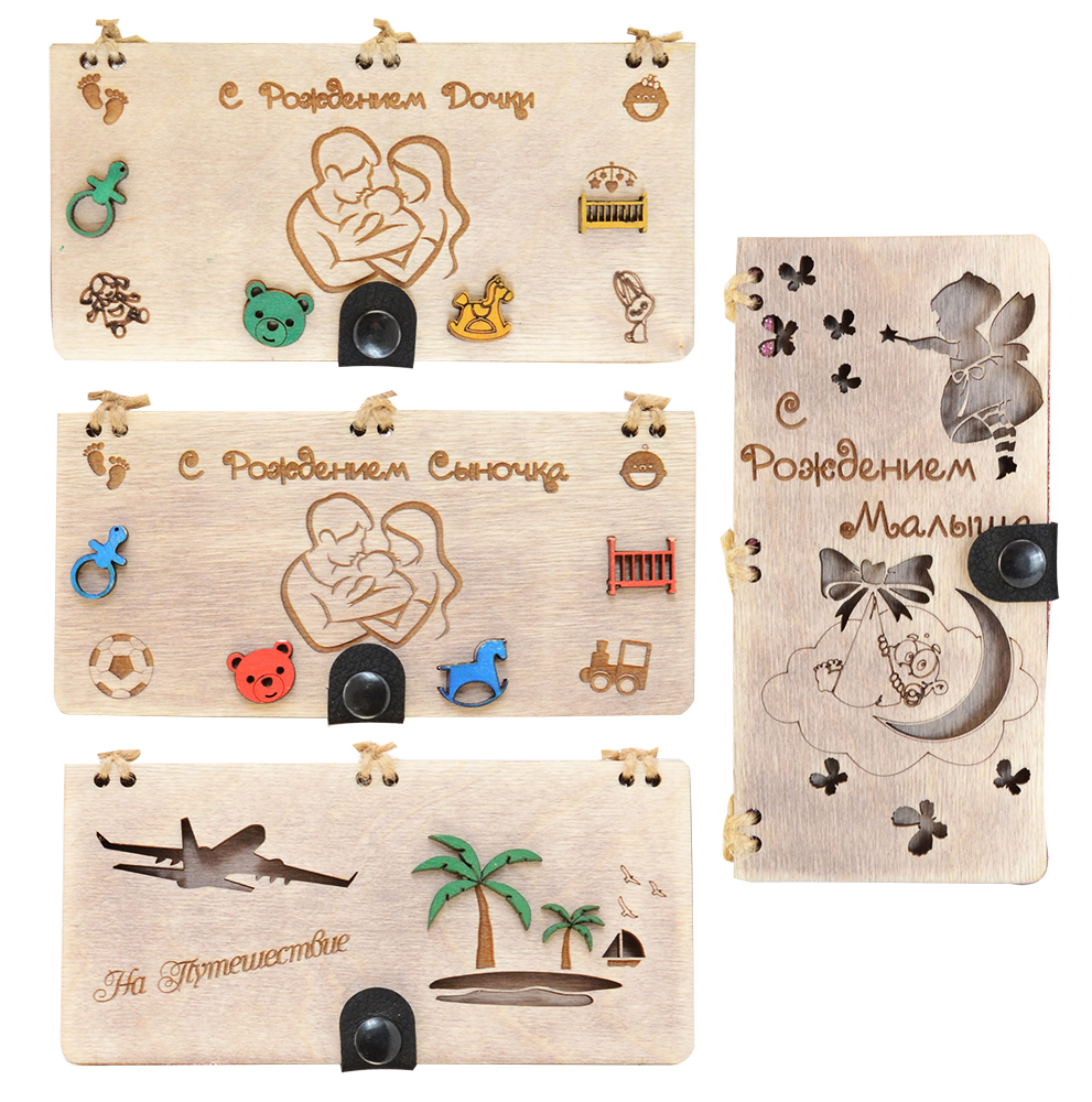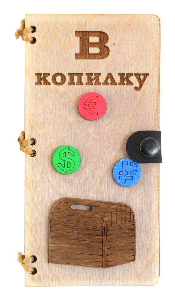 Деревянный конверт для денег 8*16,5 см на кнопке, в ассортименте