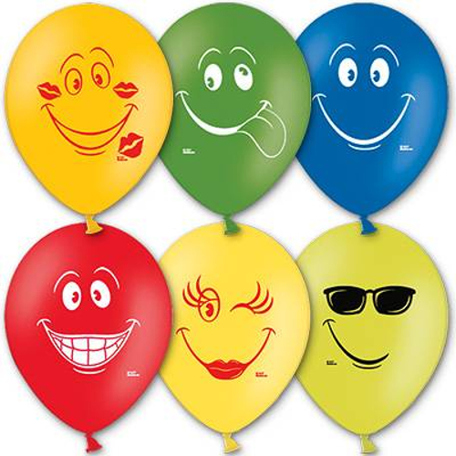 Шар воздушный 14", 50 штук, с рисунком "Улыбка", цвет в ассортименте