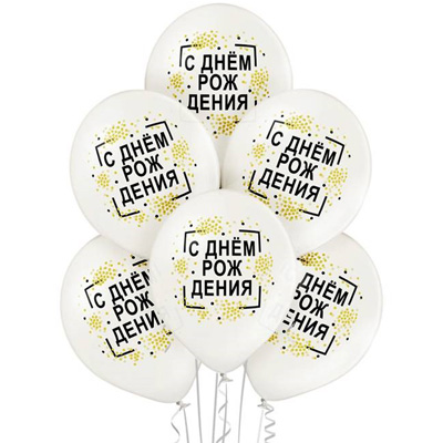 Эффектный двухцветный дизайн С Днем Рождения. Конфетти. В упаковке матовые белые шары с крупным односторонним рисунком. Размер шаров в надуве 36 см. Продаются ненадутыми. Вы можете надуть их как воздухом при помощи ручного насоса, так и гелием.