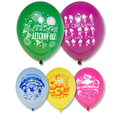 Высококачественный шар из натурального латекса. Ассорти из 10-12 цветов (в случайном соотношении), одного типа - пастель - матовый оттенок цвета. Шары с двусторонним шелкографическим рисунком (6 дизайнов на темы "Выпускник", "До свидания, детский сад" в пакете) с большим полем печати. Идеальный ассортимент для розничной продажи воздушных шариков и украшения праздника.