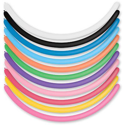Шар из натурального латекса в виде длинной колбаски. Ассорти из 10-12 цветов (в случайном соотношении). Используется для конструирования различных фигурок и композиций. Применяется в оформлении и розничной торговле. Надувать только воздухом с помощью насоса.