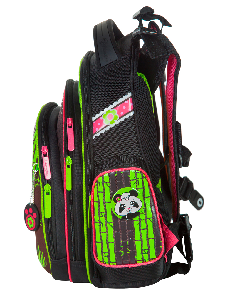- три больших отделения на молниях. В основном, самом большом отделении расположены жесткие перемычки- вставки, для комфортного размещения тетрадей или учебников. В переднем отделении предусмотрен органайзер с карманом для мобильного телефона, сетчатым карманом для мелочей, отделениями для ручек и карандашей, подвеской для ключей;