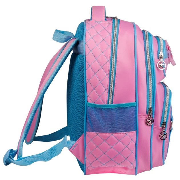 Рюкзак предназначен для девочек 7-10 лет. Его лаконичный дизайн, необычная фактура и декоративные элементы подчеркнут стиль современного школьника. Вместительная и практичная модель станет для ребенка универсальным спутником.