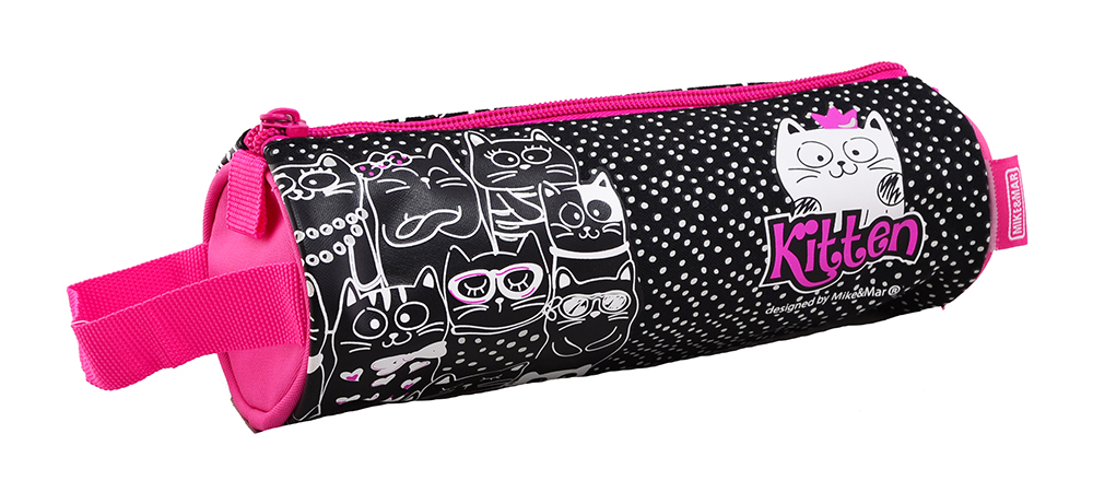 Пенал-тубус Mike and Mar "Котята" черный/малиновый