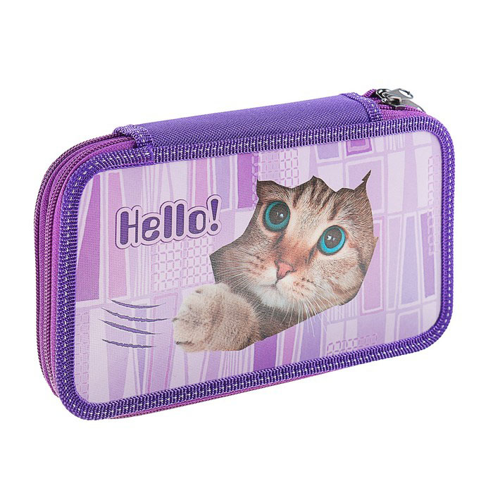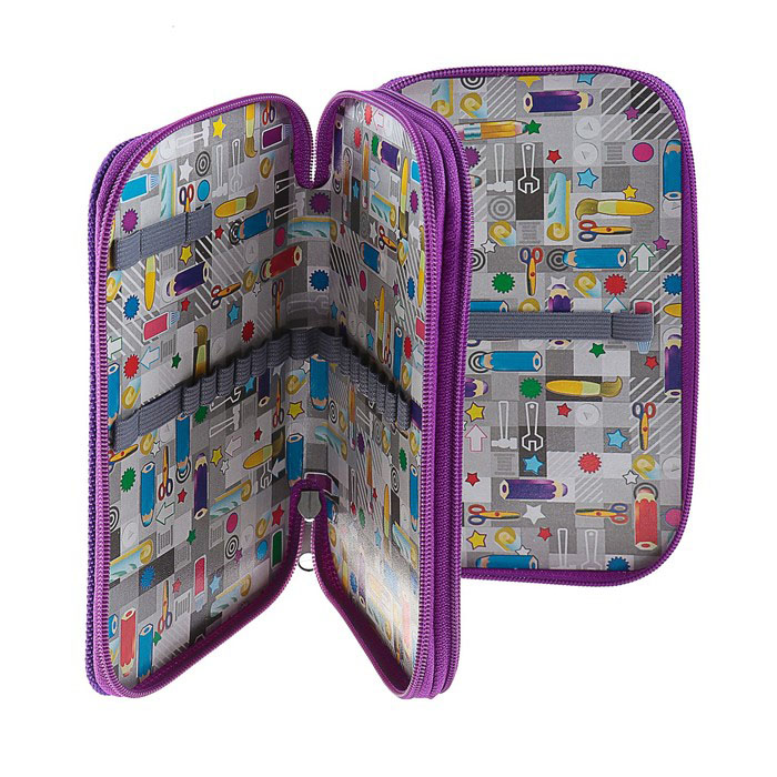 Пенал с двумя отделениями, закрывается на "молнию, имеет прочный кант и жесткую обложку, благодаря чему его форма не будет деформироваться на протяжении всего времени его использования.