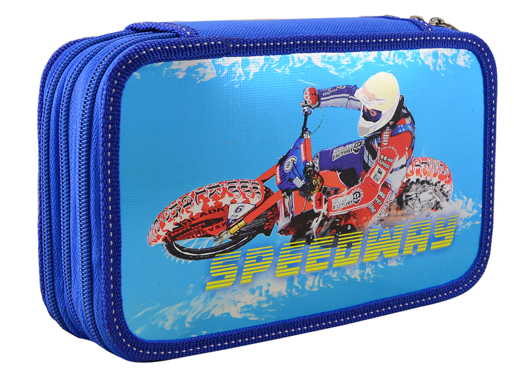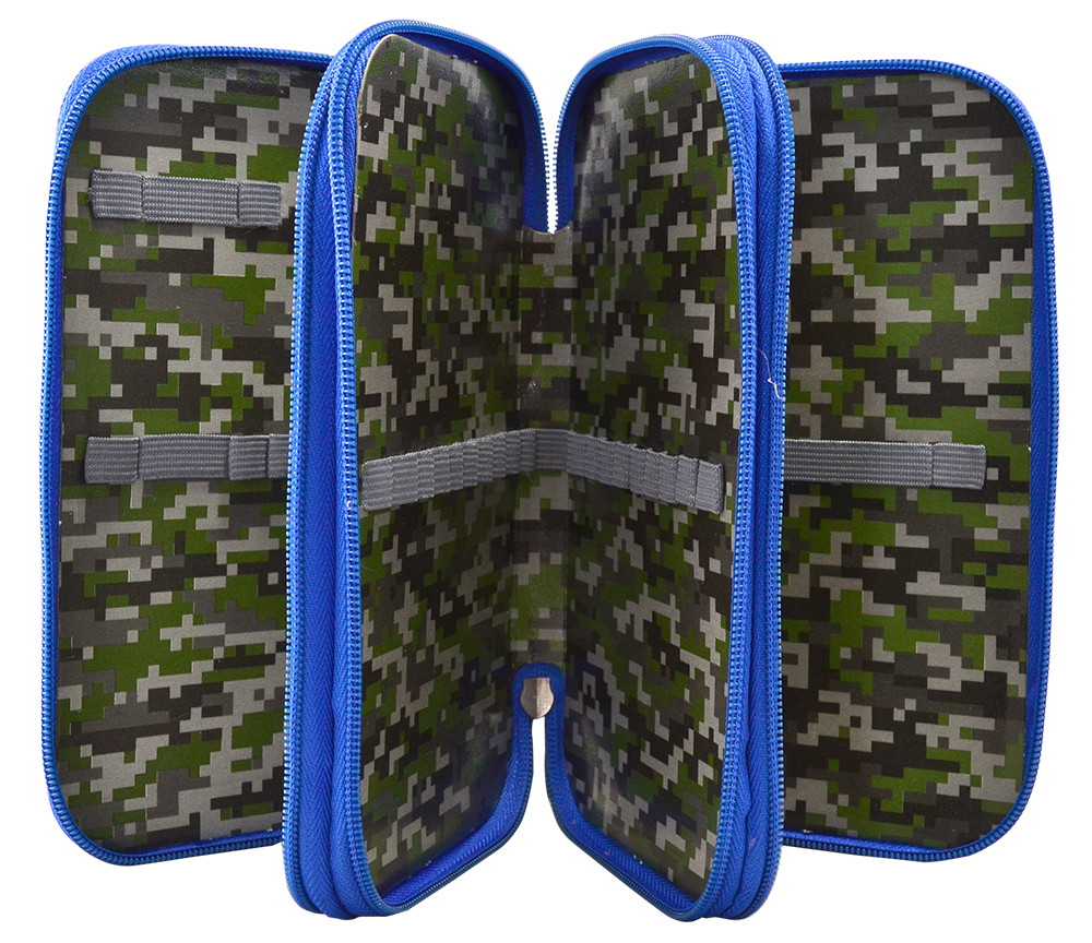 Пенал с тремя отделениями, закрывается на "молнию, имеет прочный кант и жесткую обложку, благодаря чему его форма не будет деформироваться на протяжении всего времени его использования.