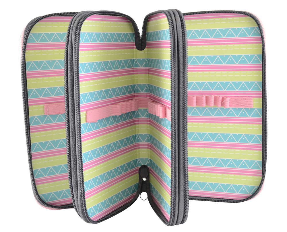 Пенал размером 20*11 см из ламинированного картона. Пенал имеет три отделения и тканевый торец. Удобная молния с трех сторон с металлическим бегунком, прочные резинки для предметов. Можно разместить до 42 предметов.