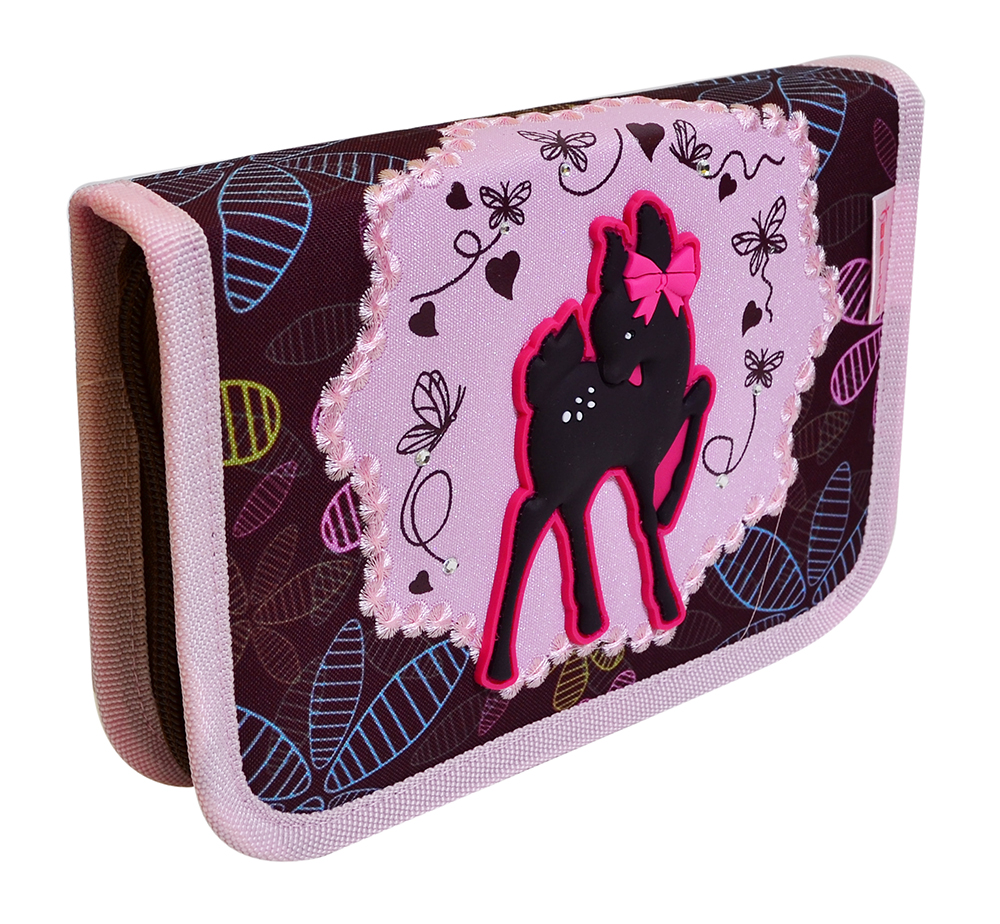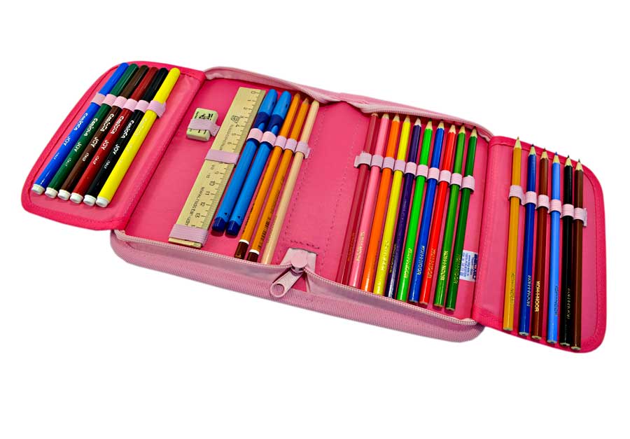 Он достаточно вместительный и в нём может разместиться большое количество разнообразных канцелярских предметов. Внутри пенала есть специальные резиночки-держатели для карандашей, ручек, фломастеров и других пишущих принадлежностей.
