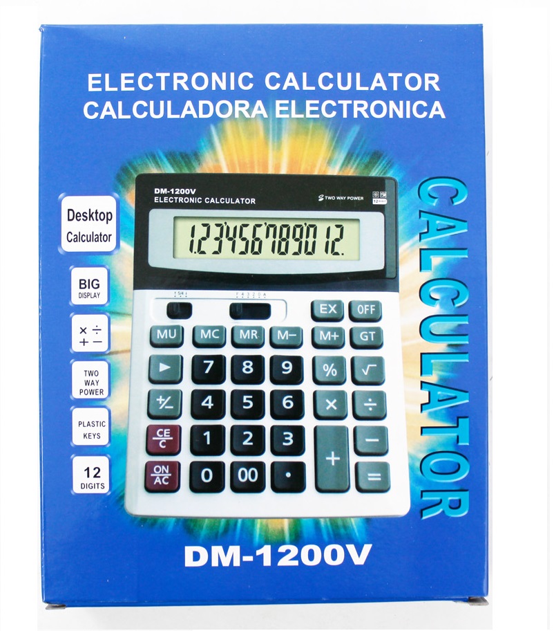 Большой бухгалтерский настольный калькулятор DM1200V. Для работы бухгалтеров, кассиров и др. специалистов. Калькулятор содержит большие цифры на дисплее и клавишах.