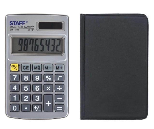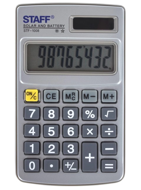 Калькулятор карманный металлический, 8 разрядов, STAFF STF-1008, двойное питание, 103*62 мм 250115