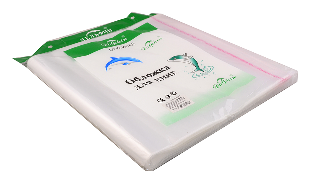 Обложка для книг 50 штук 232*450 мм, 80 мкм, прозрачная с клеевым краем 303513