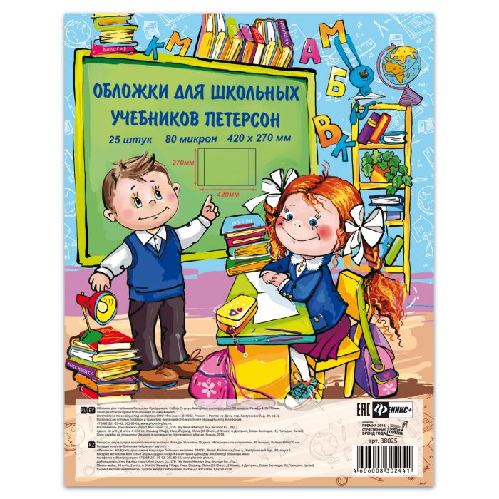 Обложки для учебников,универсальные, комплект 25 штук "Петерсон" 80 мкм, 420*270 мм