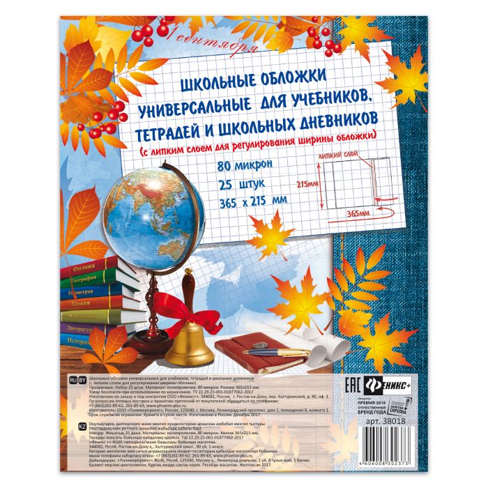 Набор универсальных обложек для учебников и тетрадей с липким слоем для регулирования ширины надежно защитит от грязи, небольших механических повреждений, влаги, смятия. Продлевает срок службы печатного изделия.