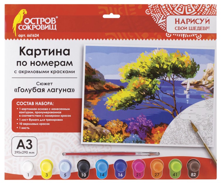 Набор для творчества. Картина по номерам А3 "ГОЛУБАЯ ЛАГУНА" ОСТРОВ СОКРОВИЩ