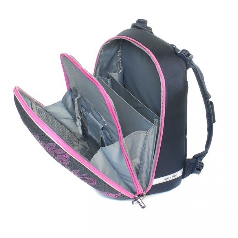 Основное большое отделение на молнии с двойной «плавающей» перегородкой (с папками-карманами) для учебников, альбомов, тетрадей.