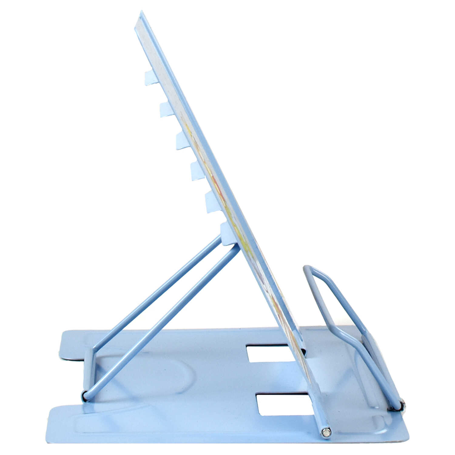 Металлическая подставка для книг поможет ребенку выбрать правильный и удобный угол наклона при чтении учебника. Она компактно располагается на столе, изготовлена из прочного металла. Угол наклона книги можно устанавливать в нескольких положениях, имеется фиксатор открытой страницы.