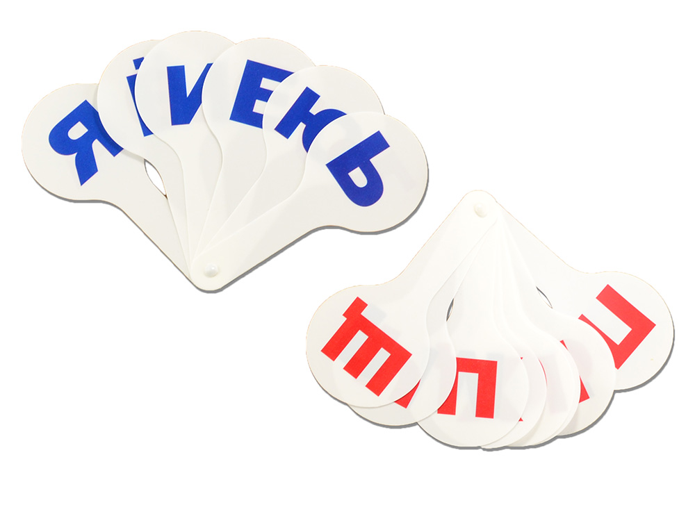Набор из пластиковых вееров, для обучения и развития детей дошкольного и младшего школьного возраста. Буквы нанесены с обеих сторон.