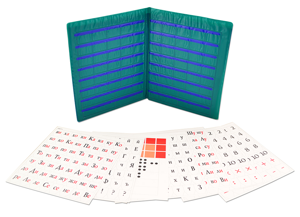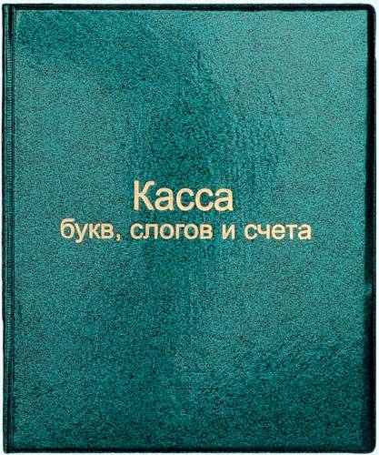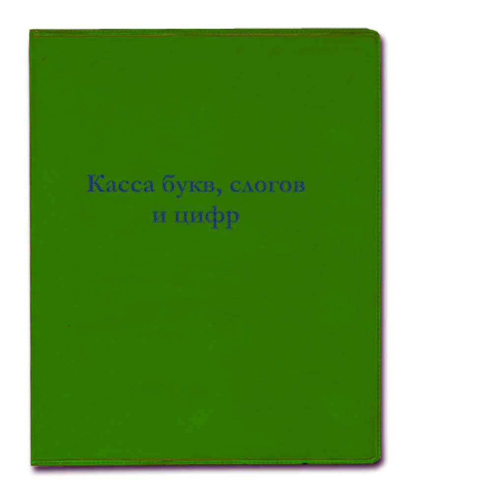 Данная касса представляет собой книжку из ПВХ с кармашками и комлект листов из мелованной бумаги с напечатанными цифрами, буквами, слогами и арифметическими знаками.