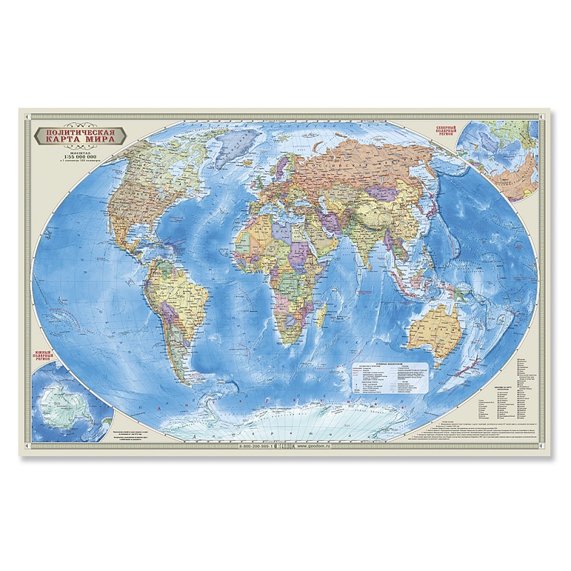 Познакомить ребенка с основами географии, политико-административным устройством мира, а также изучить названия и столицы государств поможет карта «Мир политический».