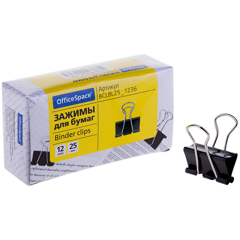 Зажимы для бумаг 25 мм, 12 штук, черные, картонная коробка OfficeSpace 178800