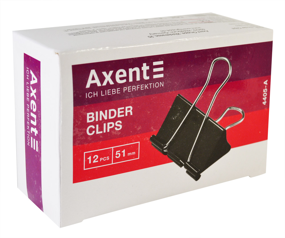 Зажимы для бумаг (биндер) 12 штук, 51 мм, черный AXENT 4405-A