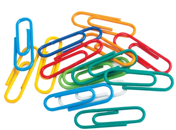 Скрепки, изготовленные из стальной проволоки с нанесением цветного пластикового покрытия, используются для скрепления листов бумаги.