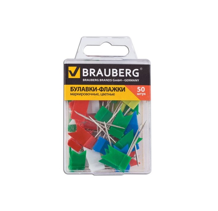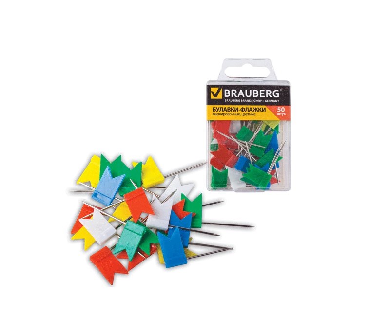 Булавки-флагки маркировочные цветные 50 штук Brauberg