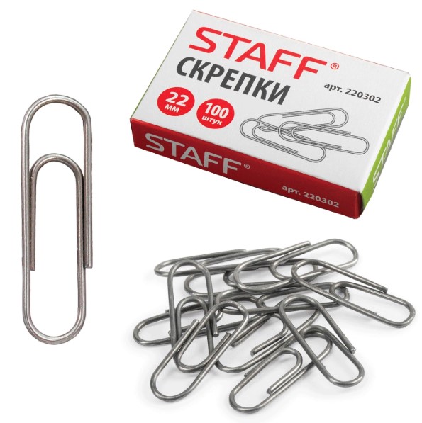 Скрепки 22 мм, металлические, 100 штук STAFF