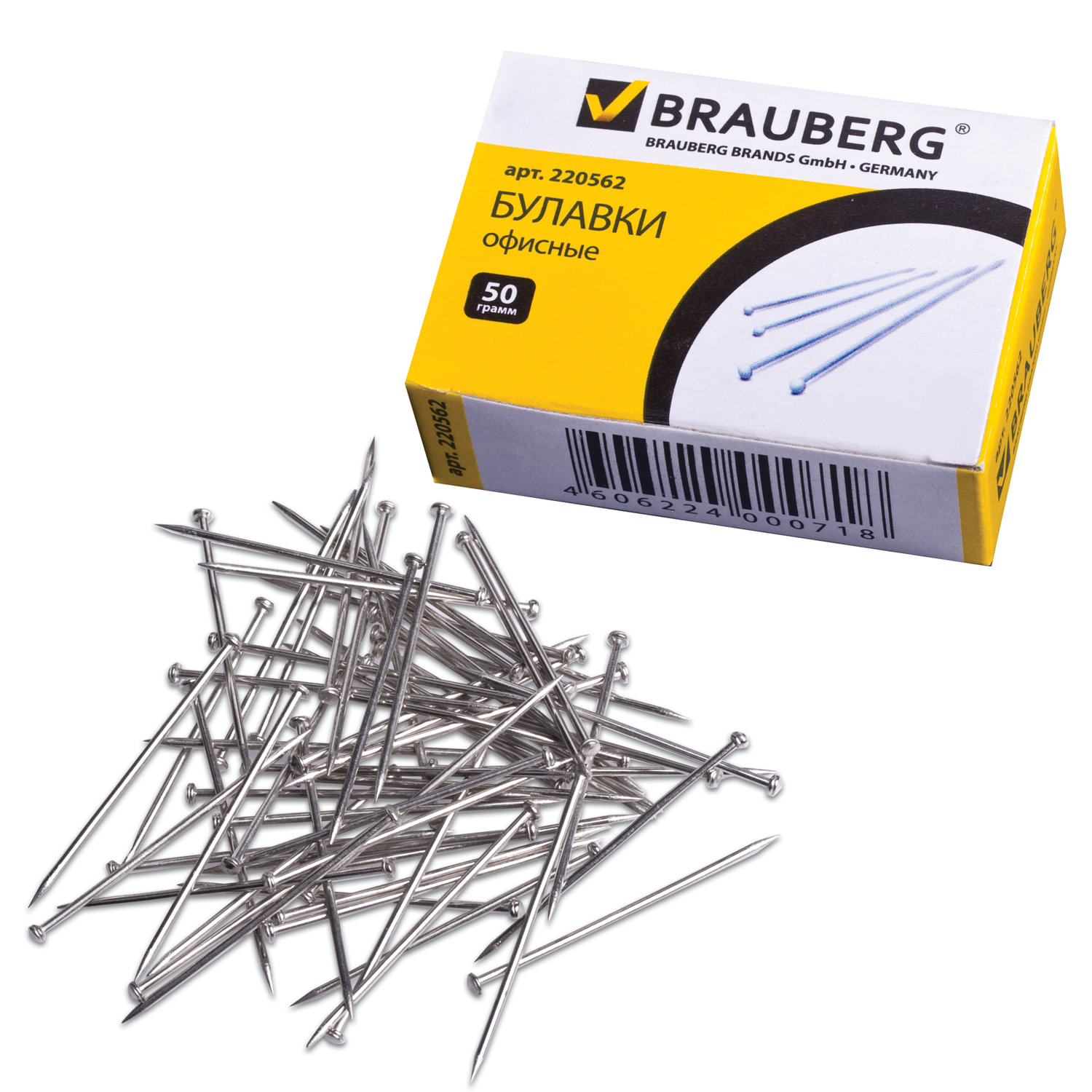 Булавки офисные BRAUBERG, 24 мм, 500 штук, в картонной коробке, 220562