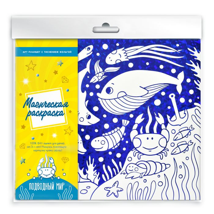 Раскраска магическая "Подводный мир" 300*260 мм, тиснение голографической фольгой