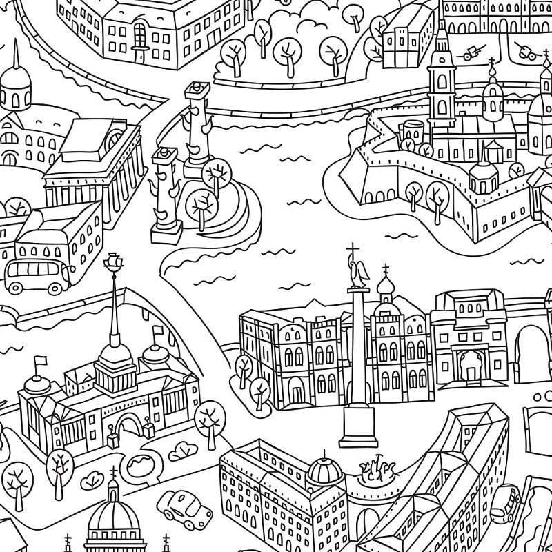 Карта-раскраска "Санкт-Петербург" - это не просто раскраска, а целое путешествие! Изучайте извилистые улочки, знакомьтесь с интересными памятниками и достопримечательностями города, наполняйте город яркими красками! Карта-раскраска подарит новые впечатления и увлечет вашего ребенка или целую компанию!