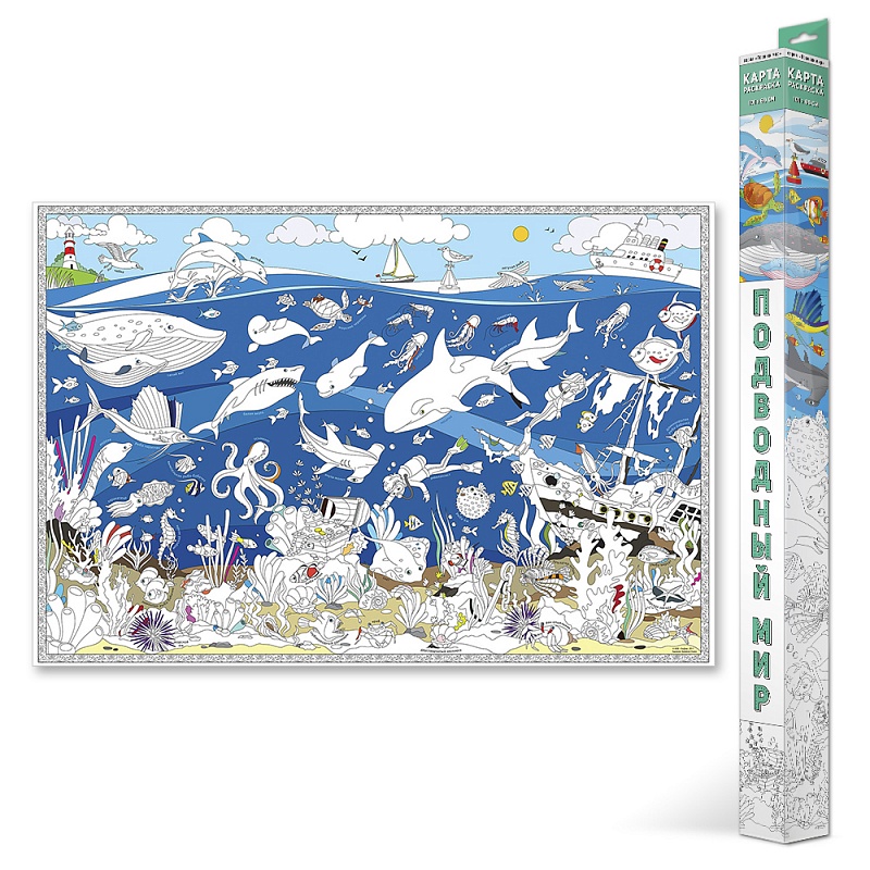 Карта-раскраска большая "Подводный мир" 101*69 см