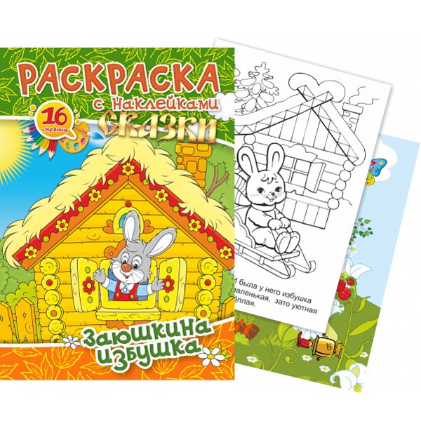 Раскраска "Заюшкина избушка" содержит сказку, картинки для раскрашивания и красочные наклейки. Она понравится юным художникам. На страницах раскраски ребенок найдет не только черно-белые иллюстрации, которые ему и предстоит раскрасить, но и интересную сказку о лисе и зайце. Малыш сможет проявить творческие способности, раскрасив портреты героев в яркие цвета. Готовые картинки можно украсить яркими наклейками.