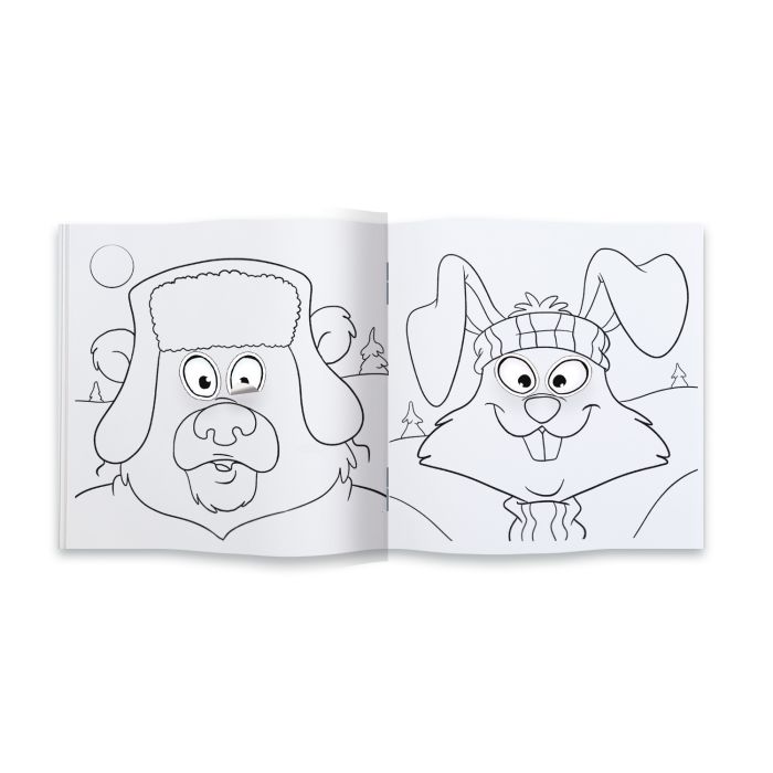 Раскраска 12 страниц с наклейками "Зверопортреты зима" 225*225 мм